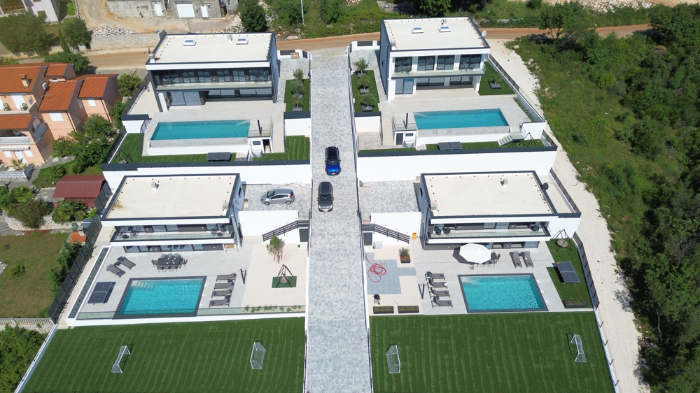 Willkommen in Ihrem neuen Traumhaus in Drenje – eine moderne, luxuriöse Villa, die keine Wünsche offenlässt. Dieses exquisite Anwesen, 2021 erbaut, besticht durch seinen neuwertigen Zustand und bietet auf zwei Etagen puren Wohnkomfort auf höchstem Niveau.