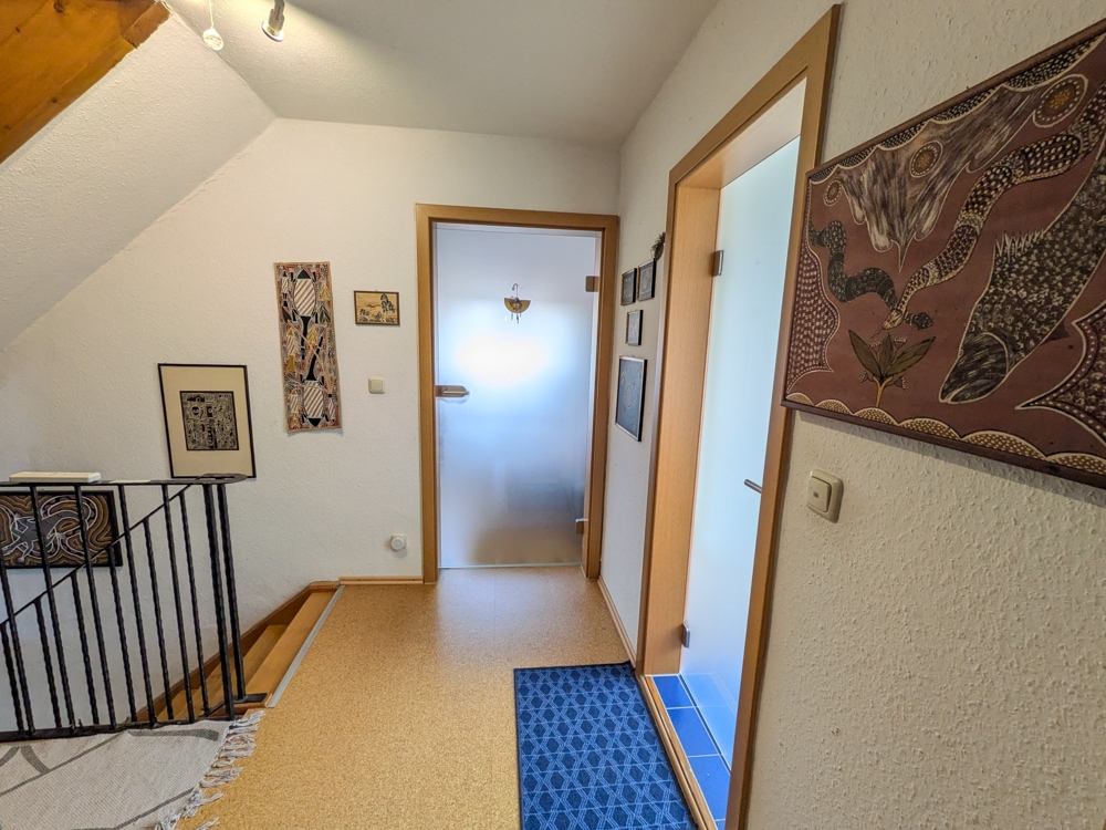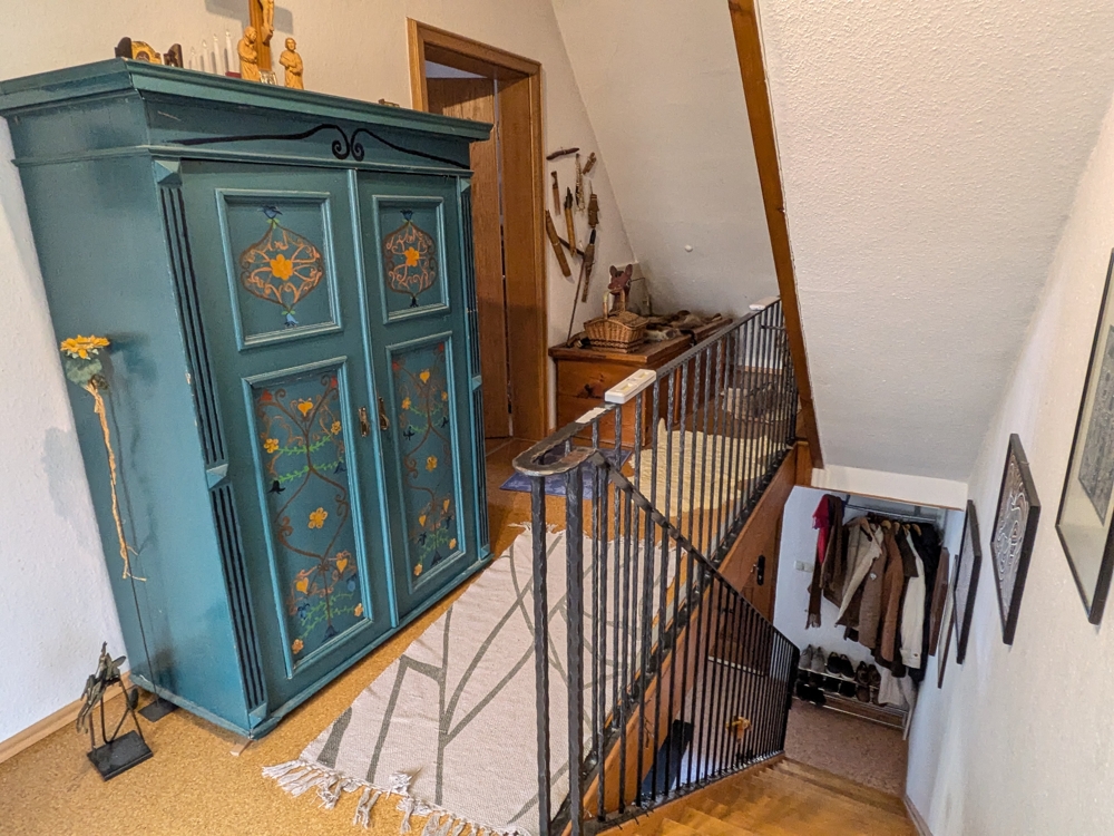 Die Ausstattung entspricht einem normalen Standard. 2004 wurde eine Garage mit elektrischem Torantrieb angebaut, die zudem unterkellert ist. Eine Photovoltaikanlage, die 2014 installiert wurde, bietet umweltfreundliche Energie mit einer Leistung von 9 kWp. Zudem ist eine Wallbox für Elektrofahrzeuge vorhanden.