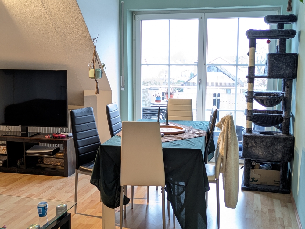 Die Wohnung bietet einen schönen, hellen Wohnraum, ein Schlafzimmer sowie ein helles Tageslicht-Badezimmer. Ein besonderes Highlight der Wohnung ist der ausgebaute Dachspitz, der ideal als Büro, Studio oder weiterer Schlafraum genutzt werden kann und somit zusätzlichen Platz bietet.